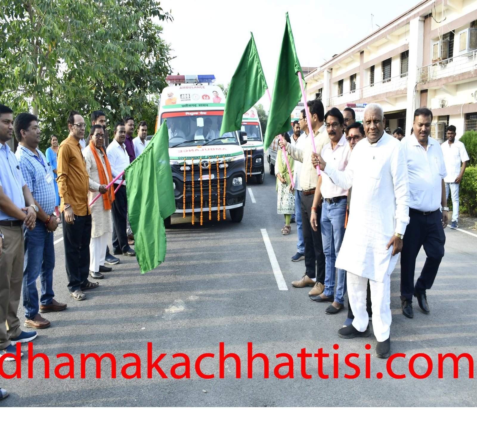 धमाका छत्तीसी मुंगेली / मुख्यमंत्री विष्णुदेव साय की मंशानुरूप शहरी क्षेत्रों में 15 मिनट एवं ग्रामीण क्षेत्रों में 30 मिनट के भीतर एम्बुलेंस सेवा उपलब्ध कराने के उद्देश्य से जिले को 07 नवीन 108 संजीवनी एक्सप्रेस एम्बुलेंस प्राप्त हुई है। इन एम्बुलेंस को जिला कलेक्टोरेट परिसर से विधायक पुन्नूलाल माहले ने हरी झंडी दिखाकर रवाना किया। उन्होंने कहा कि इन एम्बुलेंस से सभी जरूरतमंद मरीजों को समय पर चिकित्सा सुविधा उपलब्ध कराई जा सकेगी।